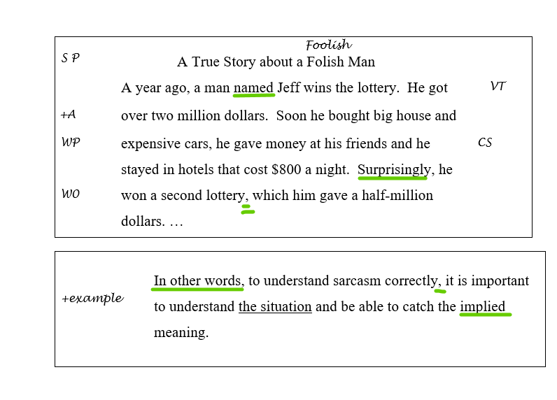 We can further motivate students to write their own papers without AI through specific praise. An easy, teacher-friendly technique is to underline in GREEN grammar, vocabulary and content that we want to praise students for.